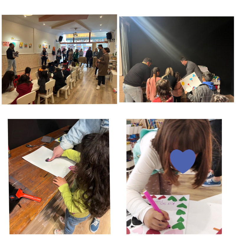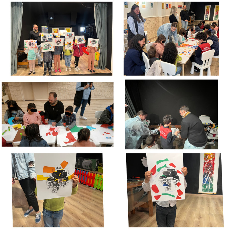 Κατά τη διάρκεια της δράσης ο εικαστικός- χαράκτης, υπεύθυνος του τμήματος χαρακτικής του Κ.Δ.Α.Π. Αμεα «Μωβ Πυξίδα» κ. Παναγιώτης Πριστούρης, ξενάγησε τα παιδιά στην έκθεση όπου είχαν την ευκαιρία να απολαύσουν έργα χαρακτικής, δημιουργίες παιδιών με αναπηρίες από το Κ.Δ.Α.Π. Αμεα «Μωβ Πυξίδα» και στη συνέχεια υλοποιήθηκε εργαστήριο κολλαγραφίας όπου το κάθε παιδί δημιούργησε το δικό του έργο.