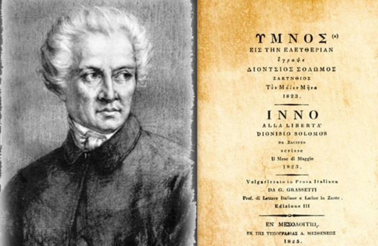 Το ποίημα «Ύμνος εις την Ελευθερίαν» το συνέθεσε ο Διονύσιος Σολωμός τον Μάιο του 1823 στη Ζάκυνθο και εκδόθηκε στο Μεσολόγγι το 1825. Αποτελείται από 158 τετράστιχες στροφές από τις οποίες οι δύο πρώτες καθιερώθηκαν το 1865 ως Εθνικός Ύμνος που ανακρούονται και συνοδεύουν την έπαρση και την υποστολή της σημαίας, ενώ ψάλλονται σε επίσημες στιγμές και τελετές.