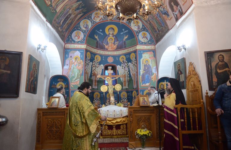 Στην ακολουθία του Όρθρου χοροστάτησε ο Σεβασμιότατος Ποιμενάρχης μας, Μητροπολίτης Αιτωλίας και Ακαρνανίας κ.κ. Δαμασκηνός, ο οποίος προεξήρχε και στην πανηγυρική Θεία Λειτουργία.