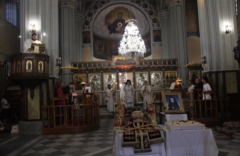 Στην Θεία Λειτουργία συμμετείχαν ο πρωτοσύγκελλος αρχιμ. Επιφάνιος Καραγεώργος, ο ιεροκήρυξ αρχιμ. Μακάριος Αντωνόπουλος, οι ιερείς του Ναού πρωτοπρ. Κωνσταντίνος Δημητρίου και πρωτοπρ. Χρήστος Γιαννακάς και οι διάκονοι π. Στέφανος Καππές, π. Αμβρόσιος Καλλιάφας και π. Νικόλαος Τσεπίσης.