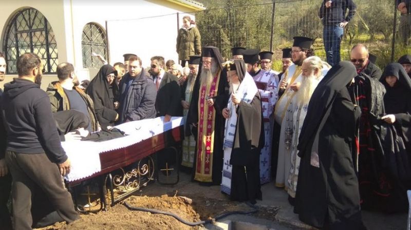 Ακολούθησε η ταφή της στο κοιμητήριο της Ιεράς Μονής, όπου εψάλη το τρισάγιο και όλοι οι πιστοί προσευχήθηκαν με το καθιερωμένο κομποσχοίνι υπέρ αναπαύσεως της ψυχής της.