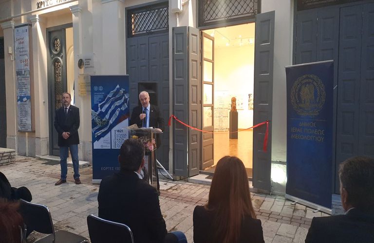 Στην εκδήλωση απηύθυνε χαιρετισμό ο Δήμαρχος Ι.Π. Μεσολογγίου, Κώστας Λύρος, τονίζοντας ότι η συμμετοχή της αξιόλογης αυτής έκθεσης στο πρόγραμμα των Εορτών Εξόδου 2022, είναι μια ευτυχής κατάληξη μιας μακροχρόνιας προσπάθειας. «Το Μεσολόγγι με τις αστείρευτες πηγές έμπνευσης διατηρεί διαχρονικά με την τέχνη μια ισχυρή σχέση αλληλεπίδρασης. Υπάρχουν στην ιστορία της ανθρωπότητας κάποια γεγονότα, πολύ λίγα, τα οποία έχουν την δύναμη να παράγουν αποτελέσματα και να εκπέμπουν μηνύματα ανεξάρτητα από το πόσο παλιά είναι. Κορυφαίο είναι και θα παραμείνει το ιστορικό γεγονός της ΠΟΛΙΟΡΚΙΑΣ και της ΕΞΟΔΟΥ του Μεσολογγίου. Ένα ιστορικό γεγονός που μίλησε και συνεχίζει να μιλάει στις γλώσσες όλου του κόσμου. Που συγκίνησε, που ενέπνευσε. Που συγκινεί και εμπνέει. Και φυσικά η ευαισθησία των ανθρώπων της τέχνης και των γραμμάτων εξέλαβε και εκλαμβάνει τα μηνύματα της ιστορίας μας με τον βαθύτερο και ταχύτερο τρόπο» κατέληξε ο Κώστας Λύρος.