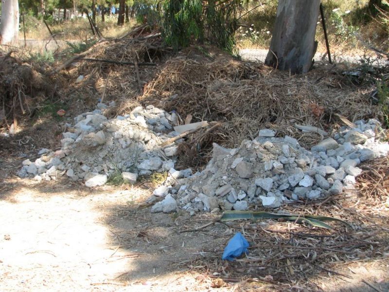 Σε κάποιες κάθετες προς την Αγίου Αθανασίου οδούς κάποιοι πολίτες έχουν εναποθέσει στην άκρη του δρόμου ξερά χόρτα, κλαδιά και χαρτόνια. Αυτά βρίσκονται ουσιαστικά στις άκρες των χωραφιών και μέσα σε κατοικημένη περιοχή εδώ και αρκετές ημέρες. Προφανώς οι πολίτες που ήθελαν να ξεφορτωθούν αυτά τα σκουπίδια δεν ήρθαν σε συνεννόηση με το δήμο προκειμένου να περάσει το φορτηγό και να τα πάρει.