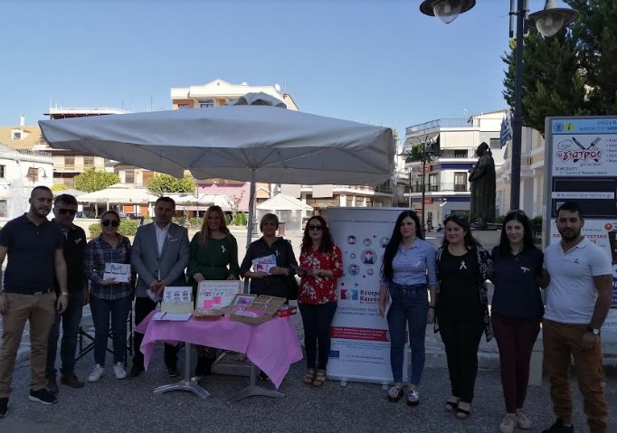 Στο πλαίσιο αυτό και με αφορμή την παγκόσμια ημέρα κατά του καρκίνου του μαστού, ο Αντιδήμαρχος Πρόνοιας και Τοπικής Ανάπτυξης Νίκος Καραπάνος και τα στελέχη του Κέντρου Κοινότητας με Παράρτημα Ρομά του Αυτοτελούς Τμήματος Κοινωνικής Προστασίας, Παιδείας και Πολιτισμού Δήμου Ι.Π. Μεσολογγίου, πραγματοποίησαν δράση την Πέμπτη 24 Οκτωβρίου 2019 στην Κεντρική Πλατεία Ι.Π. Μεσολογγίου και ώρες από 11:00π.μ – 13:00μμ με στόχο την ενημέρωση και ευαισθητοποίηση των πολιτών για την πρόληψη και την σωστή αυτοεξέταση. Κατά τη διάρκεια της δράσης έγινε και διανομή έντυπου υλικού αλλά και χορήγηση της χαρακτηριστικής ροζ κορδέλας ως σύμβολο ευαισθητοποίησης.