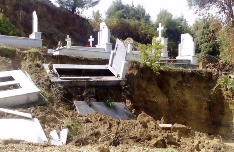 Μεσολόγγι: Η πληµµύρα παρέσυρε το χώµα από τάφους στον Άγιο Ιωάννη!
