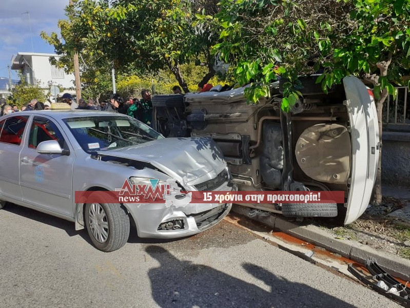 Ένα Ι.Χ. αυτοκίνητο και ένα ταξί συγκρούστηκαν πριν από λίγη ώρα στην συμβολή των οδών Χαριλάου Τρικούπη και Λεβίδου, στο Μεσολόγγι με αποτέλεσμα το Ι.Χ. να ανατραπεί.