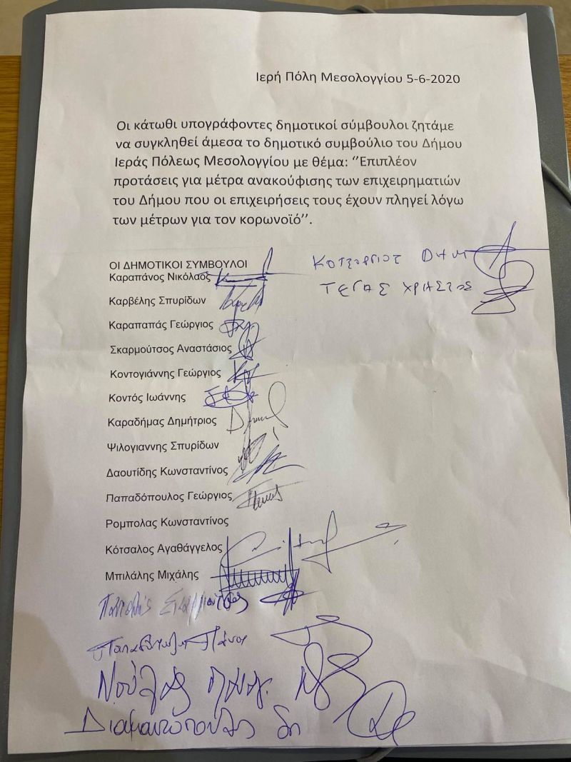 Σύγκλιση του δημοτικού συμβουλίου ζητούν οι παρακάτω 18 δημοτικοί σύμβουλοι με πρωτοβουλία του συνδυασμού «Δήμος για τα παιδιά μας» και του επικεφαλής Νίκου Καραπάνου.