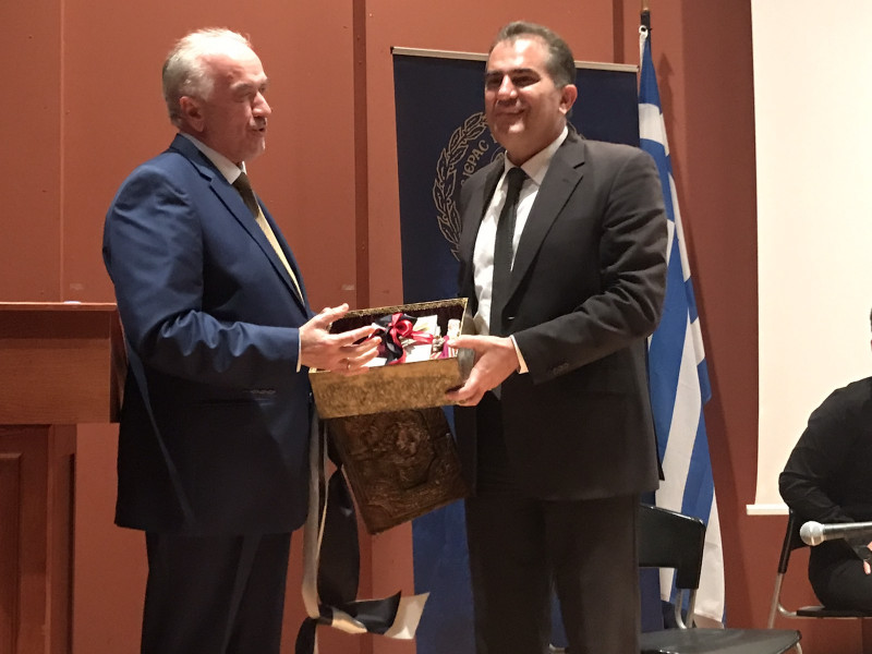 Η εκδήλωση ολοκληρώθηκε με τις ανταλλαγές αναμνηστικών δώρων.