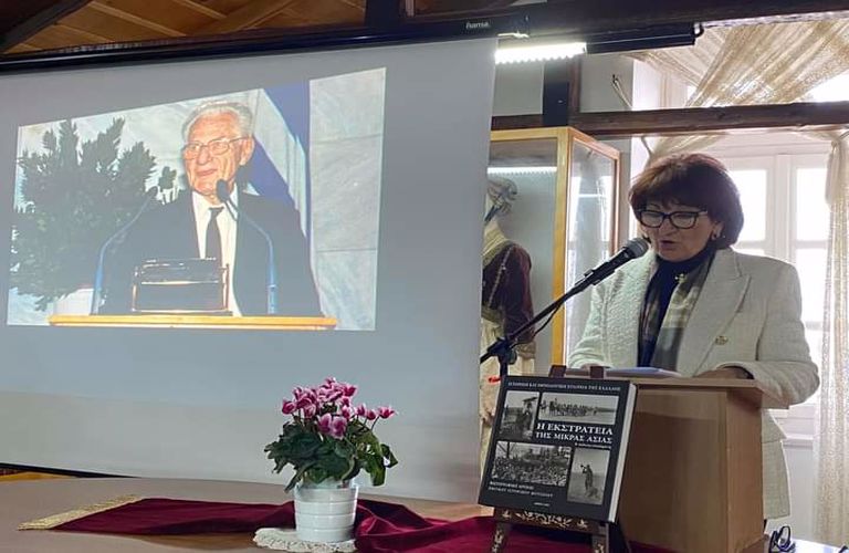 Για την Εκστρατεία της Μικράς Ασίας, μίλησε με εμπεριστατωμένη ιστορική πληροφόρηση, συνοδεία βιντεοπροβολής, η κα. Ανδρονίκη Μαρκασιώτη, επιμελήτρια Φωτογραφικού Αρχείου Εθνικού Ιστορικού Μουσείου, με θέμα «Η Μικρασιατική Εκστρατεία μέσα από το Φωτογραφικό Αρχείο του Εθνικού Ιστορικού Μουσείου».