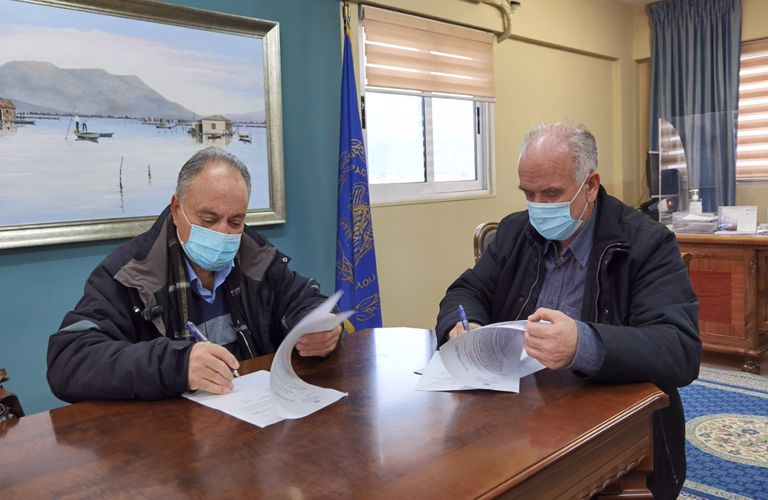 Στην υπογραφή της εργολαβίας «Ανάπλαση περιβάλλοντος χώρου κεντρική πλατείας Αιτωλικού» προχώρησαν χτες ο Δήμαρχος Ι.Π. Μεσολογγίου Κώστας Λύρος και ο ανάδοχος του έργου.