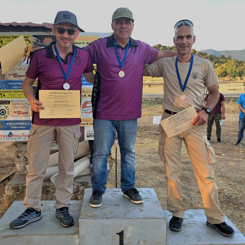 Στα ανοιχτά σκοπευτικά ο Παναγιώτης Λαμπρακόπουλος πήρε το Χρυσό Μετάλλιο, ο Δημήτρης Σιαπλαούρας το Ασημένιο Μετάλλιο και ο Μιχάλης Φιλόπουλος με το Χάλκινο.
