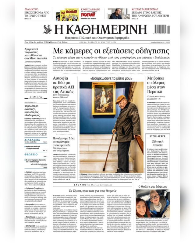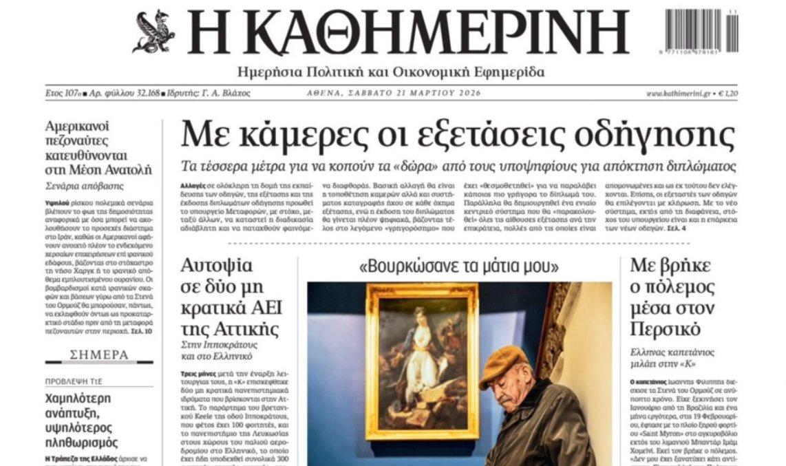 Τα φώτα πέφτουν επάνω στο… Μεσολόγγι και στην «Καθημερινή» με τη φωτογραφία του Νίκου Αλιάγα με τον ηλικιωμένο μπροστά στον πίνακα του Ντελακρουά.