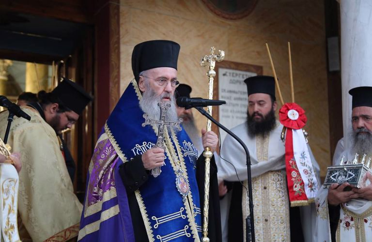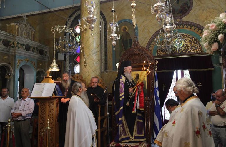 Ο Σεβασμιώτατος χοροστάτησε στην ακολουθία του μεθέορτου πανηγυρικού Εσπερινού και στη συνέχεια προεξήρχε στην λιτάνευση της ιεράς Εικόνος της Υπεραγίας Θεοτόκου στους δρόμους του χωριού.