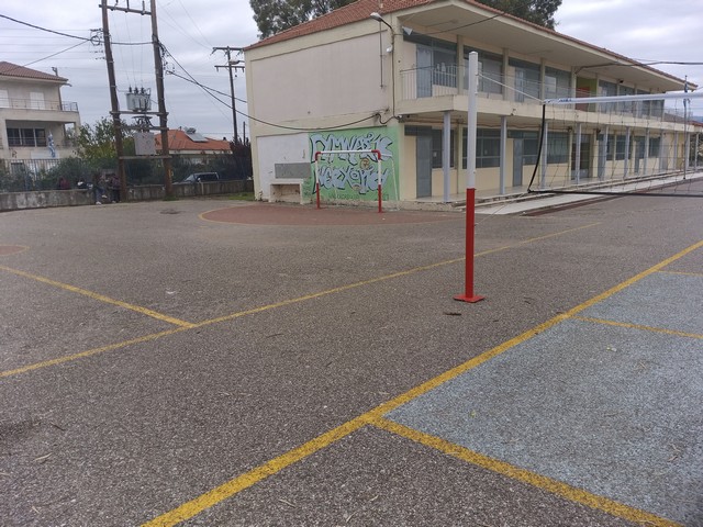 Συγκεκριμένα τα παιδιά με την συμπαράσταση του Διευθυντή του Γυμνασίου κ. Φώτη Σκληρού και του Συλλόγου Διδασκόντων και με την καθοδήγηση του Καθηγητή Φυσικής Αγωγής κ. Γιάννη Νταλακούρα χάραξαν και δημιούργησαν στον προαύλιο χώρο του Γυμνασίου τρία γήπεδα.