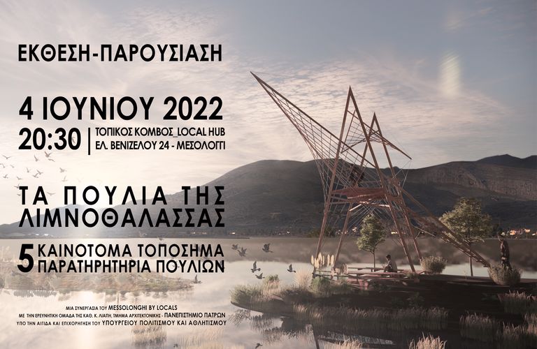 Με την ολοκλήρωση της διαδικασίας σχεδιασμού το ΜΕΣΟΛΟΓΓΙ ΤΩΝ ΝΤΟΠΙΩΝ-MESSOLONGHI BY LOCALS και η ερευνητική ομάδα της καθηγήτριας του τμήματος Αρχιτεκτόνων Μηχανικών του Πανεπιστημίου Πατρών κ. Κ. Λιάπη είναι στην ευχάριστη θέση να σας προσκαλέσουν στην τελική παρουσίαση του έργου σχεδιασμού νέων τοποσήμων στη Λιμνοθάλασσα της Κλείσοβας.