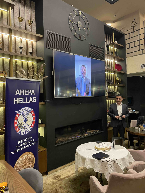Την εκδήλωση χαιρέτισε από τις ΗΠΑ με βιντεοσκοπημένο μήνυμα, ο Ύπατος Πρόεδρος της AHEPA (Washington DC) κ. Jimmy Kokotas ο οποίος έλκει την καταγωγή του από την περιοχή. Μαζί με τις ευχές του δεν παρέλειψε να εξάρει τον εποικοδομητικό ρόλο του τμήματος στις δράσεις της AHEPA Hellas.