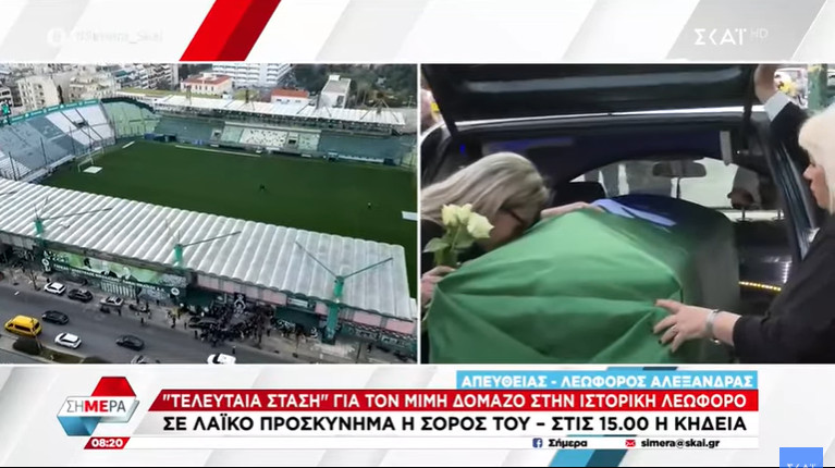 Νωρίτερα, ο εγγονός του Μίμη Δομάζου άφησε, μάλιστα, μια μαύρη μπλούζα με τη φράση «αιώνια πιστός» στην οποία ο ίδιος είχε γράψει με σπρέι «μια ζωή Παναθηναικός θα σε αγαπώ μια ζωή παππού, Σταμάτης αιώνια πιστός».