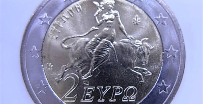 Στο κέρμα των 2 ευρώ απεικονίζεται σκηνή από ψηφιδωτό που βρέθηκε στη Σπάρτη (3ος αι. μ.Χ.) και αναπαριστά την αρπαγή της Ευρώπης από τον Δία, μεταμορφωμένο σε ταύρο. “Η Ευρώπη είναι μια μορφή της ελληνικής μυθολογίας από την οποία πήρε το όνομά της η ήπειρός μας” σχολιάζει η εφημερίδα Berliner Kurier.