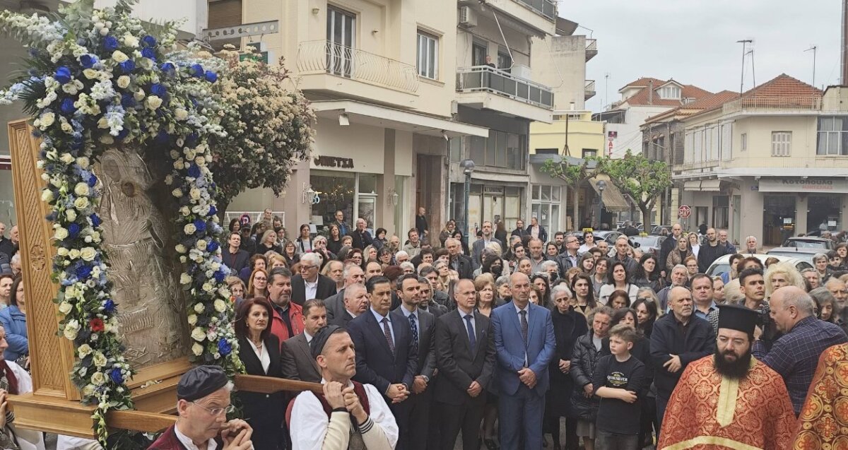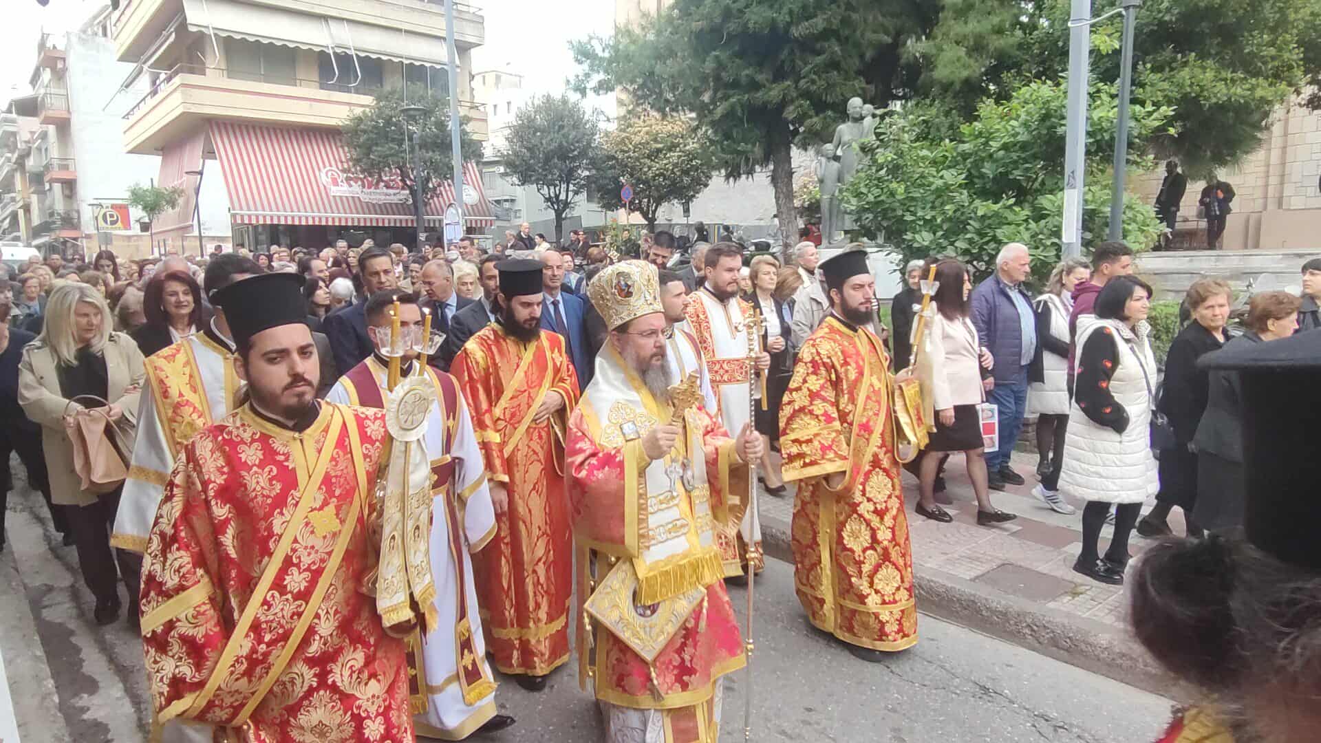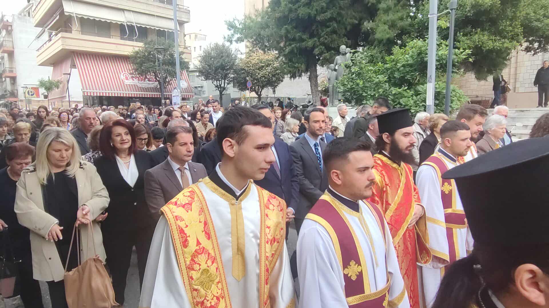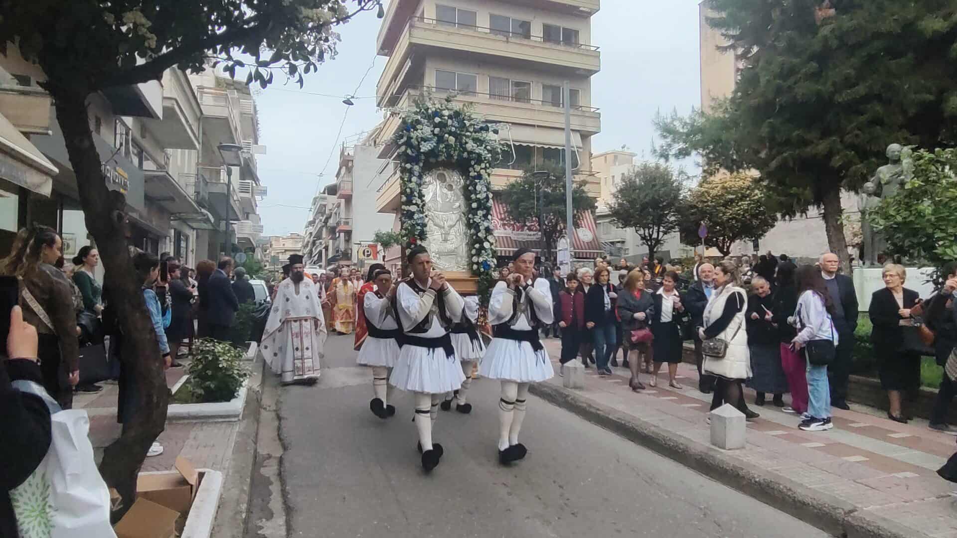 Πλήθος κόσμου συνόδευσε την Ιερή Εικόνα, ενώ συμμετείχαν Κληρικοί, Μαθητές, Πολιτιστικοί Σύλλογοι και η Φιλαρμονική.