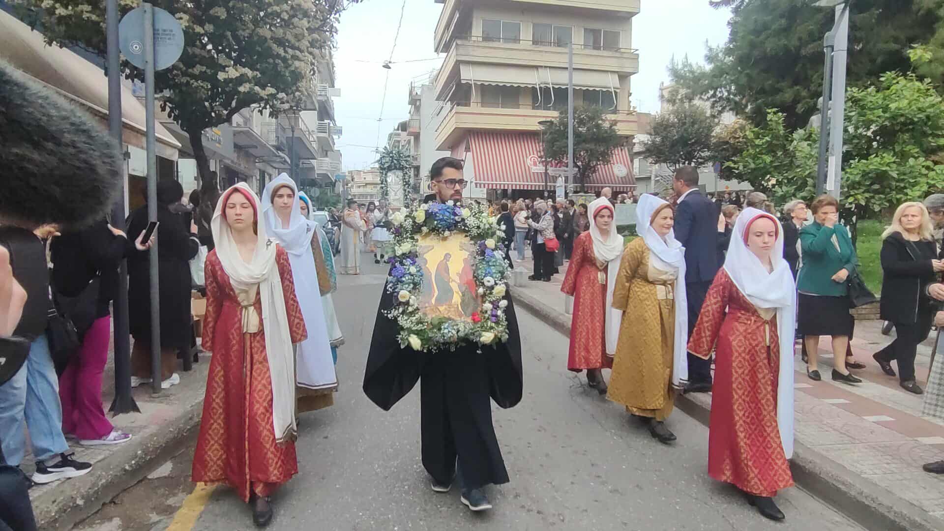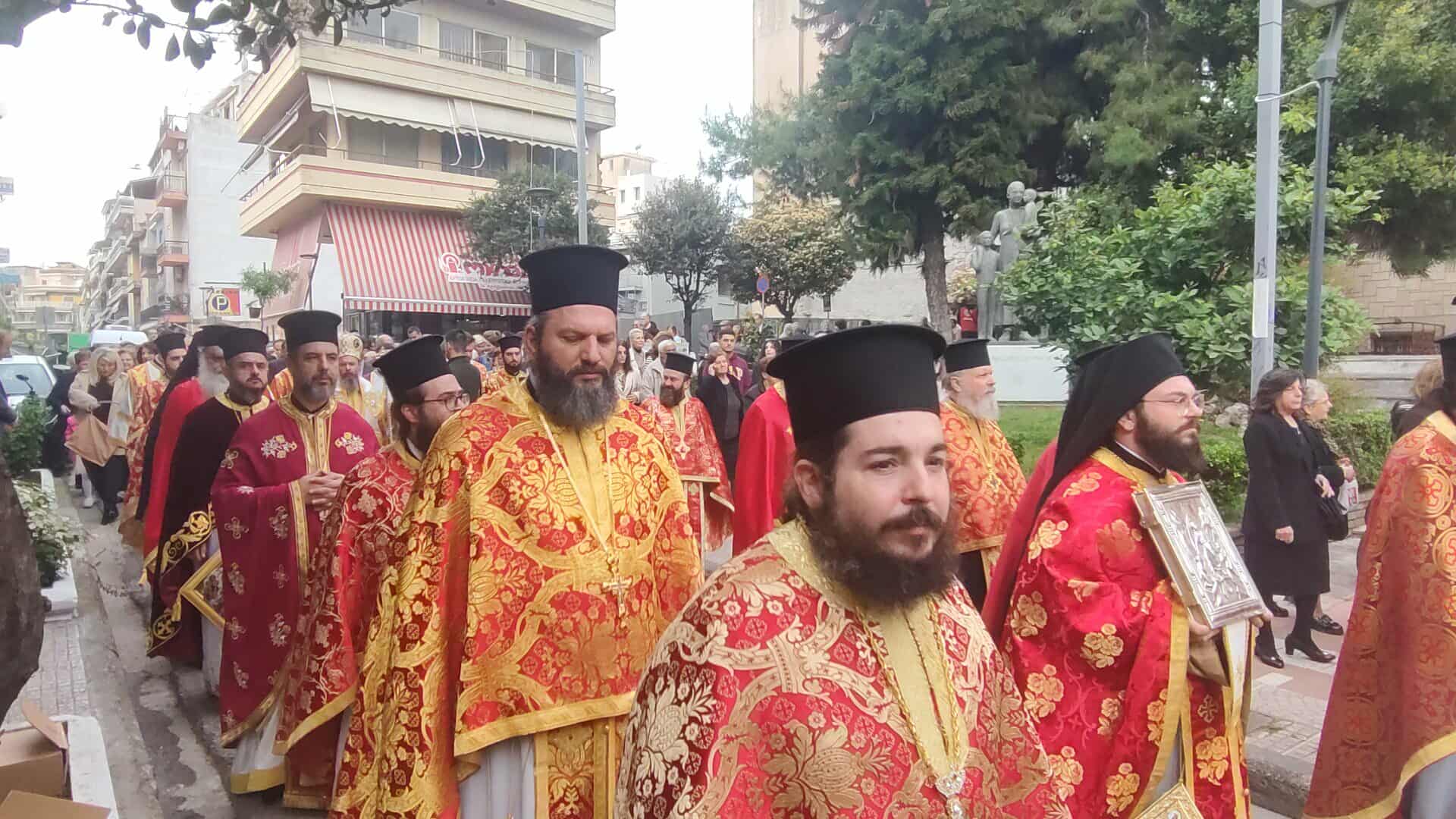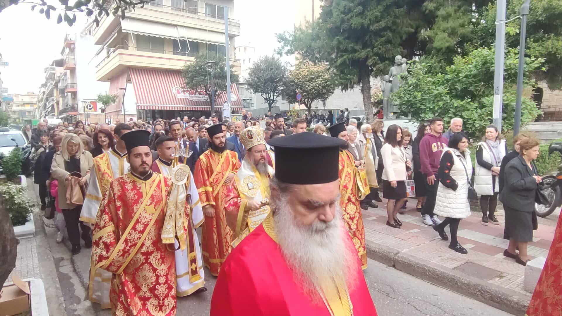 Πλήθος κόσμου συνόδευσε την Ιερή Εικόνα, ενώ συμμετείχαν Κληρικοί, Μαθητές, Πολιτιστικοί Σύλλογοι και η Φιλαρμονική.