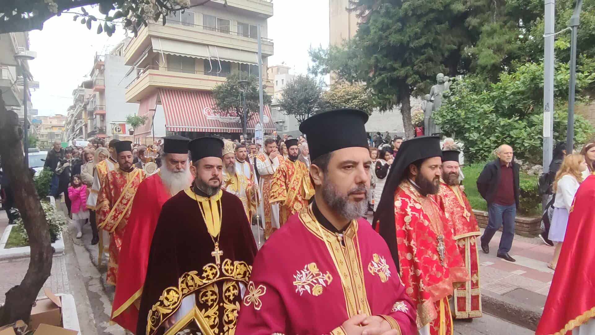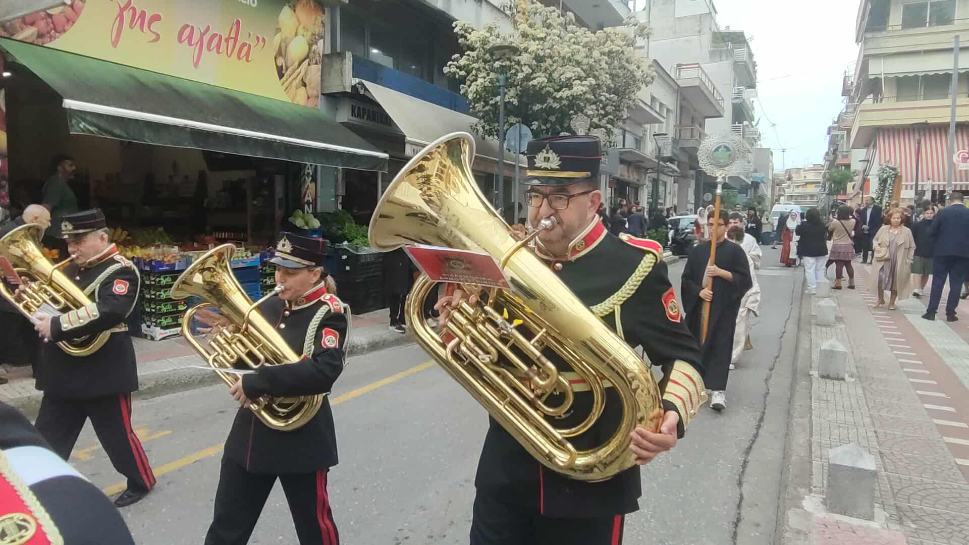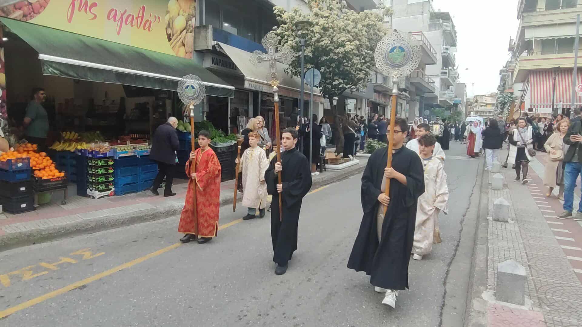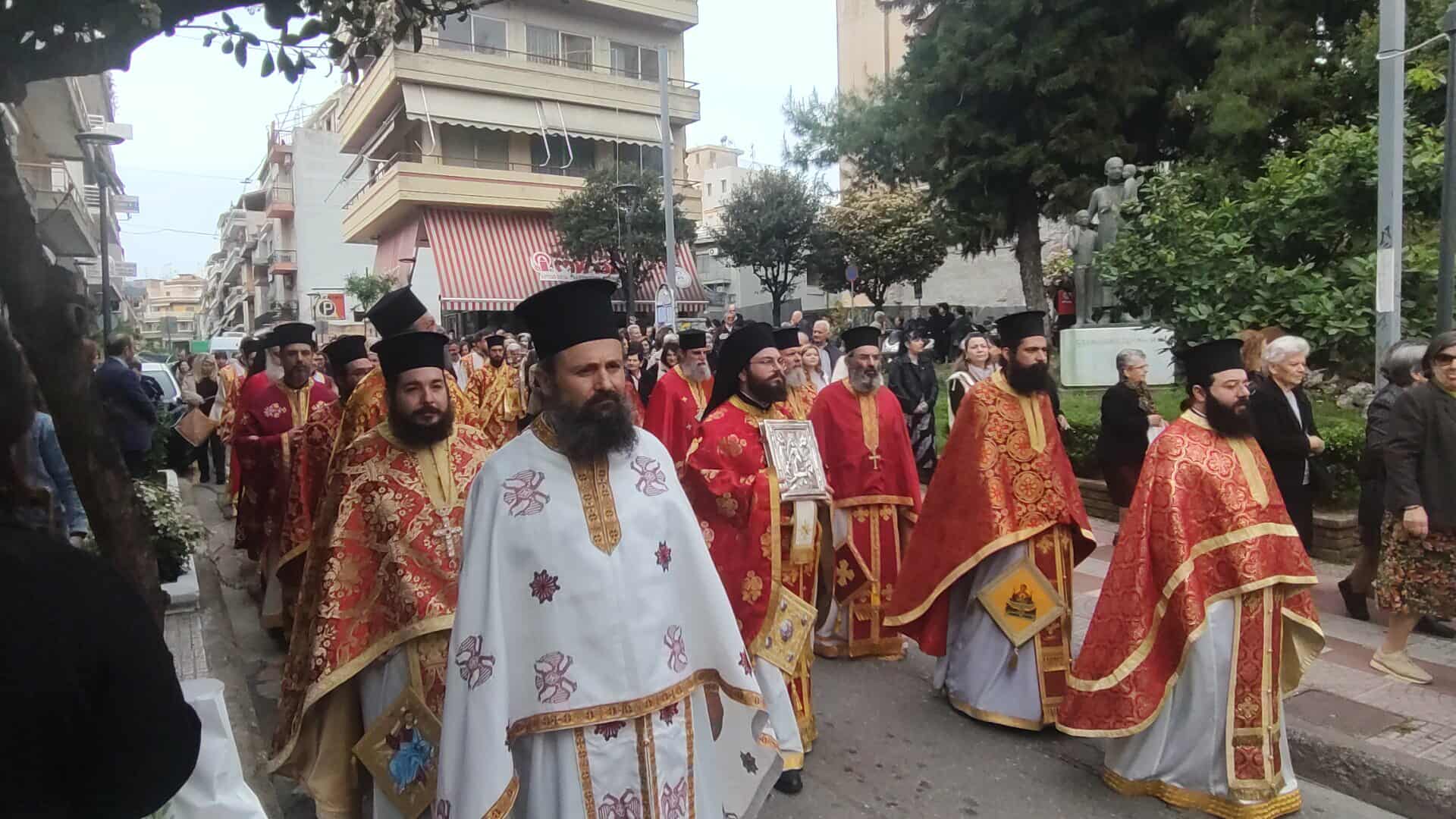 Πλήθος κόσμου συνόδευσε την Ιερή Εικόνα, ενώ συμμετείχαν Κληρικοί, Μαθητές, Πολιτιστικοί Σύλλογοι και η Φιλαρμονική.