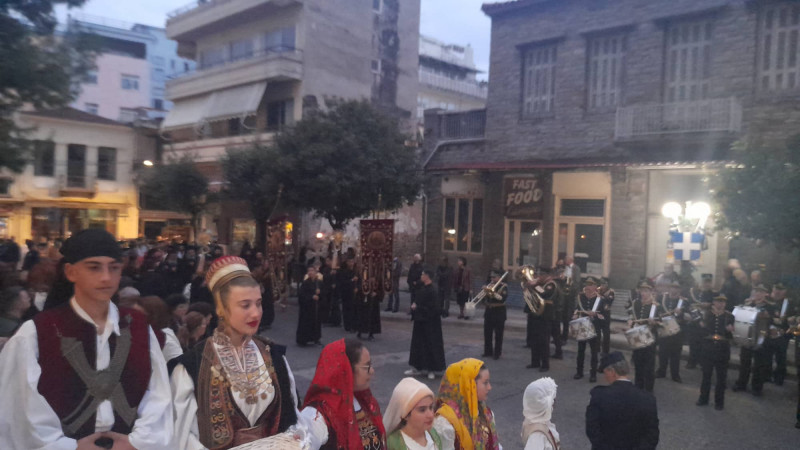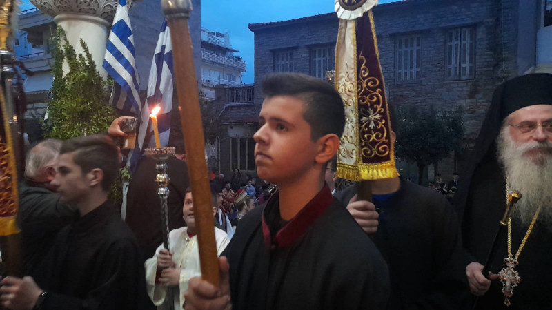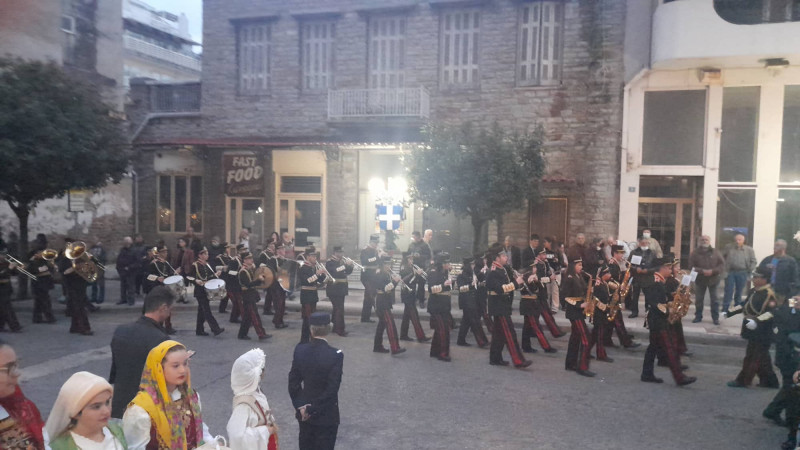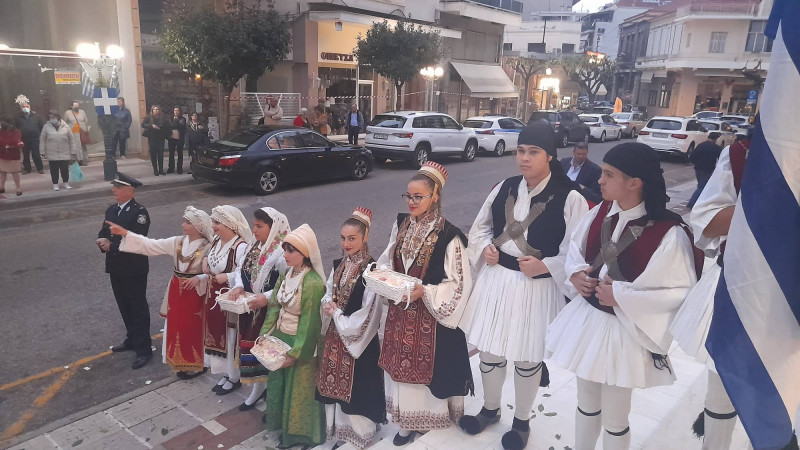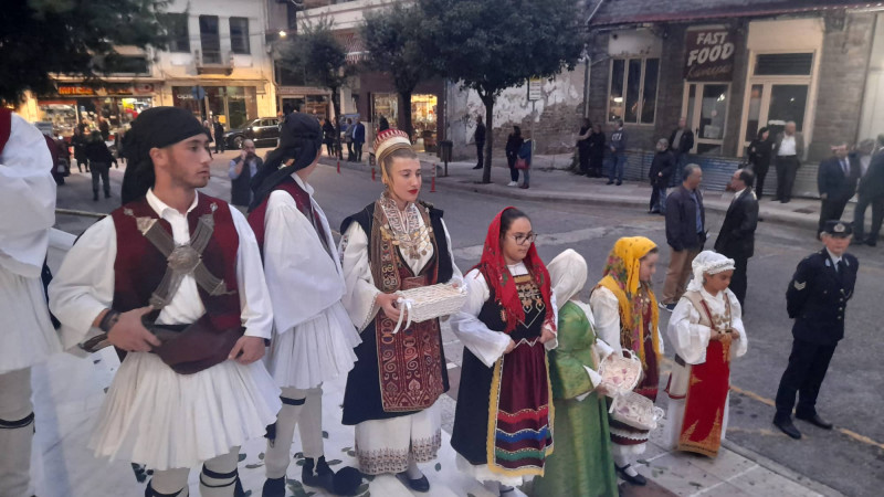 Στην Οδό Τσικνιά είχαν στοιχηθεί μαθητές Γυμνασίων και Λυκείων του Αγρινίου μαζί με μέλη παραδοσιακών συγκροτημάτων της πόλης.