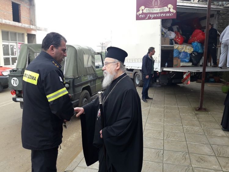 Σημαντική ήταν η συνδρομή των υπηρεσιών της τοπικής Πυροσβεστικής Υπηρεσίας, που με τους καταλλήλους ανθρώπους βοήθησε τόσο στη μεταφορά των συγκεντρωθέντων ειδών πρώτη ανάγκης, αλλά και διευκόλυνε, από την στιγμή των καταστροφών, την πρόσβαση του Σεβασμιωτάτου Ποιμενάρχου στα σπίτια των πληγέντων, ώστε να ενισχυθούν κατά τη δοκιμασία τους.