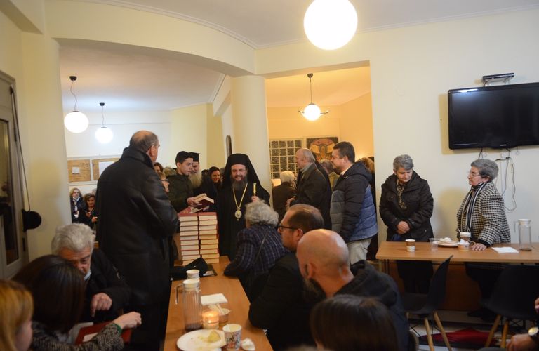 Στη συνέχεια ο π. Κωνσταντίνος Καντάνης ευχαρίστησε τον Σεβασμιώτατο για την παρουσία του και για την στήριξή του στο έργο της Ενορίας και η κ. Ελένη Μάλαινου – Μούρτη έκανε μια εκτενή παρουσίαση της διαδρομής των έντεκα ετών λειτουργίας του Ενοριακού Συσσιτίου. Για τους σκοπούς και την δράση της Ομάδας Εθελοντών Διασωστών, που διατηρεί ο Ιερός Ναός, μίλησε σχετικά ο εκπαιδευτικός κ. Φώτης Χριστοδούλου.