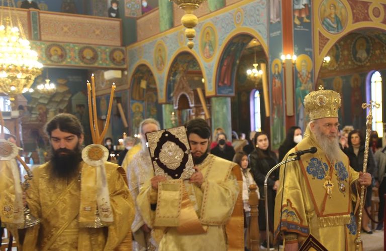 Ὁ Σεβασμιώτατος στό κήρυγμά του ἀναφέρθηκε σέ τρεῖς μεγάλους Ἁγίους καί Πατέρες τῆς Ἐκκλησίας πού ἑορτάζουμε σήμερα (12 Μαρτίου). Δηλαδή, ἐκτός τοῦ ἁγίου Γρηγορίου τοῦ Παλαμᾶ, πού ἑορτάζουμε πάντοτε τήν Β΄ Κυριακή τῶν Νηστειῶν, ἡ Ἐκκλησία ἑορτάζει καί τήν μνήμη τοῦ ἁγίου Γρηγορίου τοῦ Διαλόγου, Πάπα Ρώμης καί τοῦ ἁγίου Συμεών τοῦ Νέου Θεολόγου λόγῳ τῆς κοιμήσεώς του αὐτήν τήν ἡμέρα.