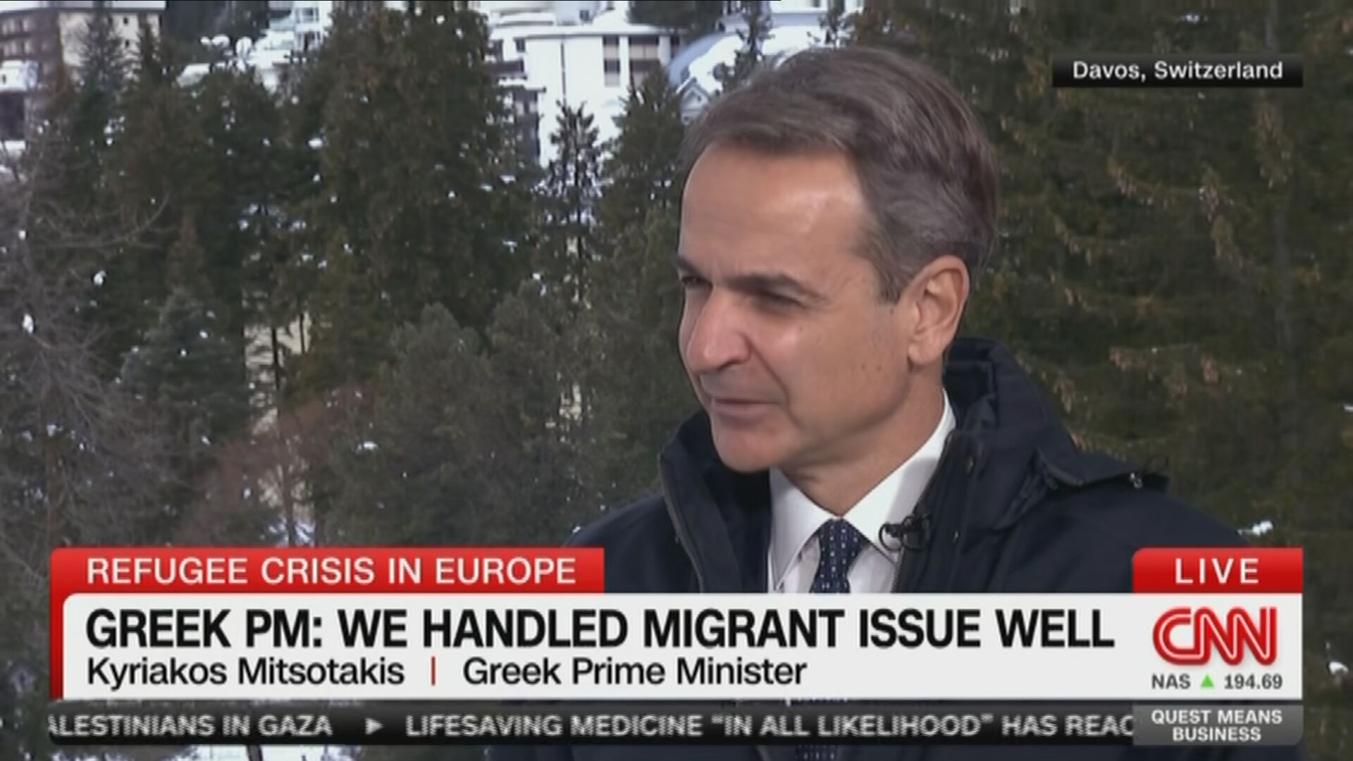 Ο πρωθυπουργός Κυριάκος Μητσοτάκης παραχώρησε συνέντευξη στο CNN στο πλαίσιο του Παγκόσμιου Οικονομικού Φόρουμ στο Νταβός.