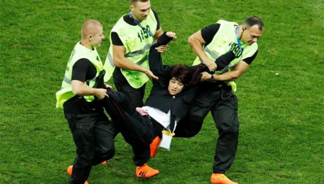 Συγκεκριμένα, τέσσερις Ρώσοι, μέλη του κινήματος εισέβαλαν στον αγωνιστικό χώρο παρά τα δρακόντεια μέτρα ασφαλείας.