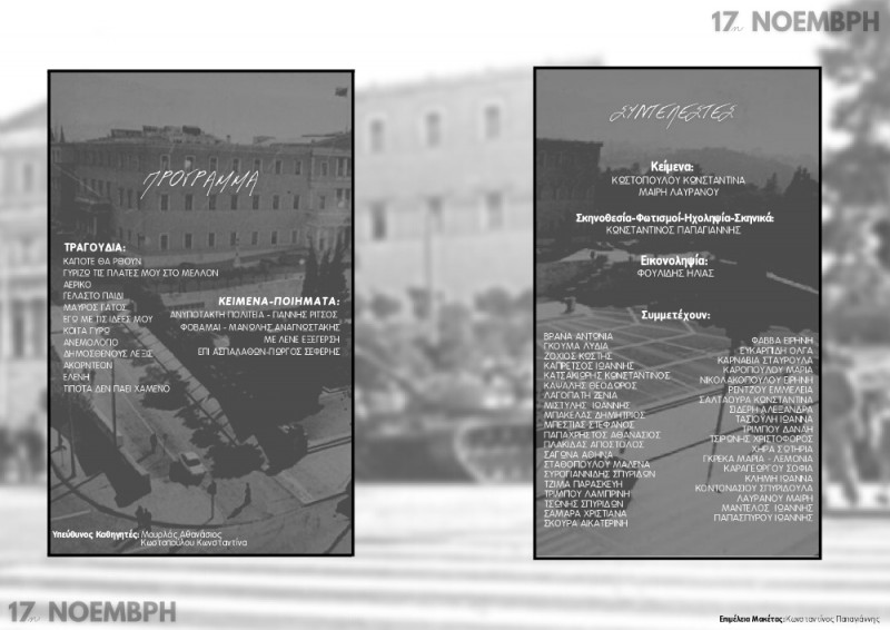 Μουσικό Σχολείο Αγρινίου – Εξέγερση Πολυτεχνείου: Εκδήλωση για τον Εορτασμό της Επετείου