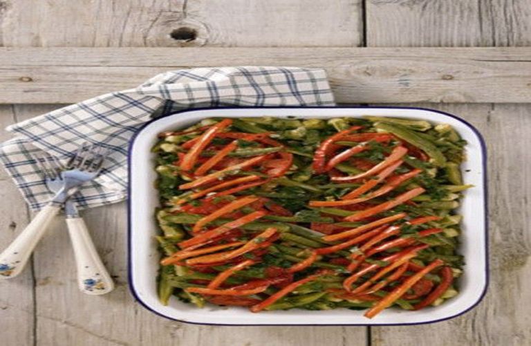 Μπάµιες φούρνου µε ροδέλες ντοµάτας και πιπεριές