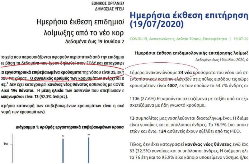 Λίγο μετά, ωστόσο, ήρθε η ενημέρωση για το πού εντοπίστηκαν τα νέα κρούσματα κι εκεί τα… κουκιά δεν “έβγαιναν” αφού γινόταν λόγος για 24 κρούσματα!