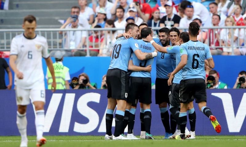 Τον δρόμο προς τη νίκη έδειξε ο Σουάρες στο 10’ με εκτέλεση φάουλ λίγο έξω από τη μεγάλη περιοχή και το 2-0 έγινε στο 23’ με αυτογκόλ του Σέριτσεφ στην κόντρα που έβαλε στο μακρινό σουτ του Λαξάλτ. Το… κερασάκι στην τούρτα μπήκε στο 90’ με την προβολή του Καβάνι. Αυτή είναι η πρώτη φορά, που η Ουρουγουάη περνάει στην επόμενη φάση με το απόλυτο και χωρίς να έχει γκολ.