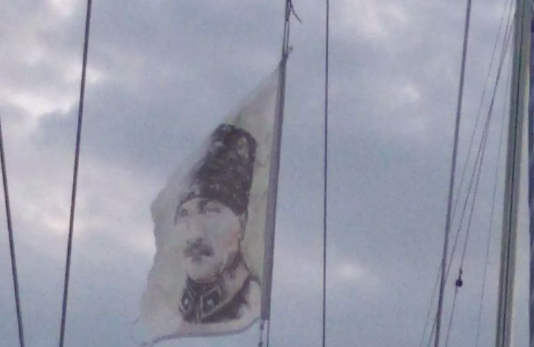 Το ιστιοφόρο έδεσε στο λιμάνι της Μυτιλήνης και ο ιδιοκτήτης του ανέβασε τη σημαία με το πρόσωπο του ιδρυτή της σύγχρονης Τουρκίας, Κεμάλ Ατατούρκ. Χρειάστηκε η παρέμβαση του Λιμενικού για να την κατεβάσει.
