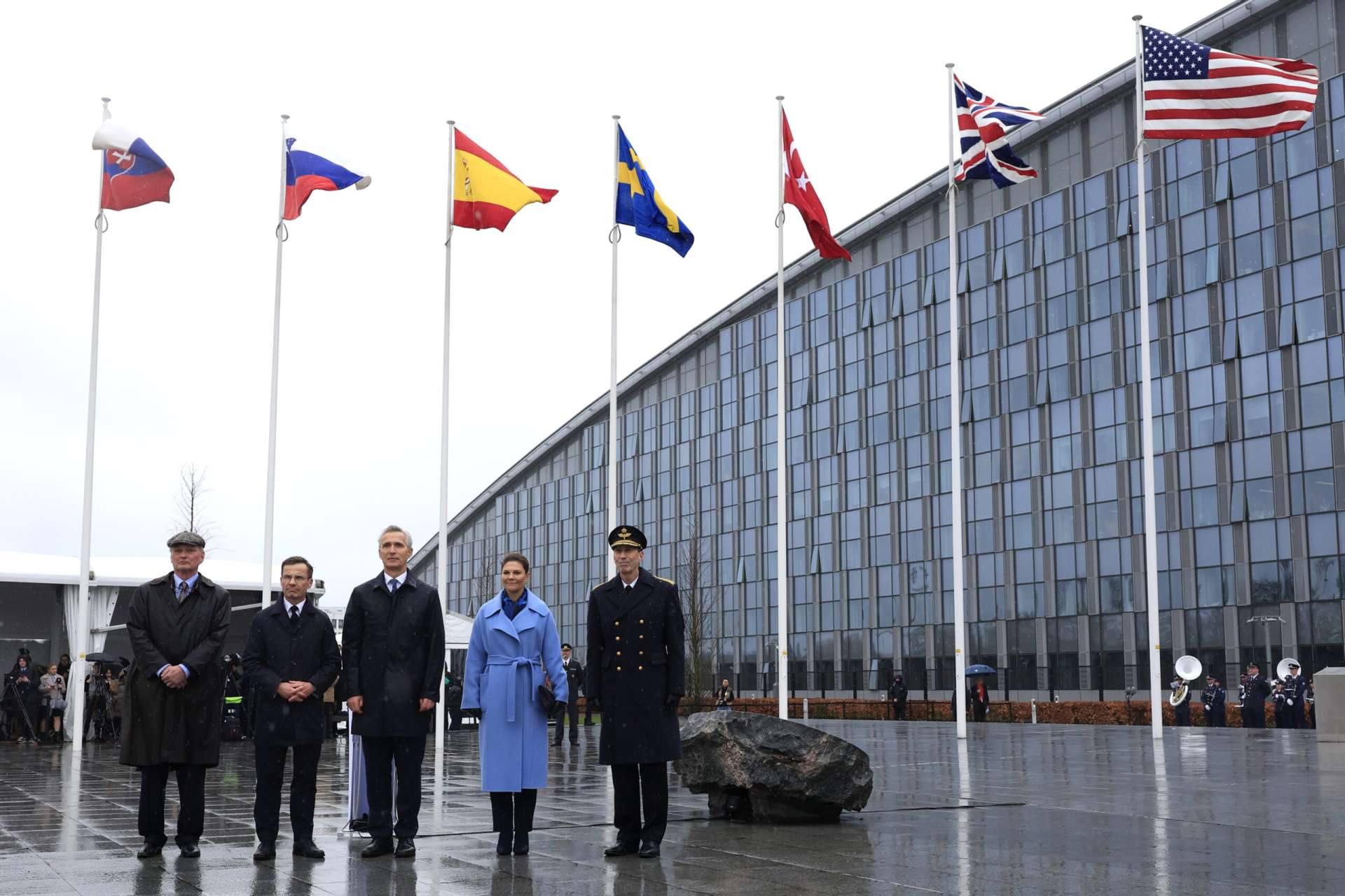 Στις σημαίες των μελών της Βορειοατλαντικής Συμμαχίας υψώθηκε και η σημαία της Σουηδίας κατά την επίσημη τελετή στην έδρα του ΝΑΤΟ στις Βρυξέλλες για την ένταξη της χώρας ως το 32ο μέλος. Η σημαία της Σουηδίας, τοποθετήθηκε ανάμεσα σε αυτήν της Τουρκίας και της Ισπανίας. Στην συνέντευξη Τύπου που παραχώρησαν ο Γενικός Γραμματέας του ΝΑΤΟ, Γενς Στόλτενμπεργκ με τον πρωθυπουργό της Σουηδίας, το κυρίαρχο μήνυμα ήταν « όλοι για έναν, ένας για όλους».