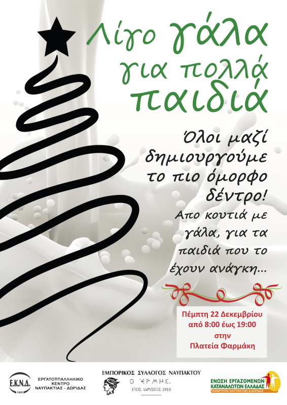 Ελάτε και φέρτε μερικά γάλατα εβαπορέ στην Πλατεία Φαρμάκη την Πέμπτη 22 Δεκεμβρίου, για να κάνουμε ΟΛΟΙ μαζί το Δέντρο όσο πιο μεγάλο γίνεται…