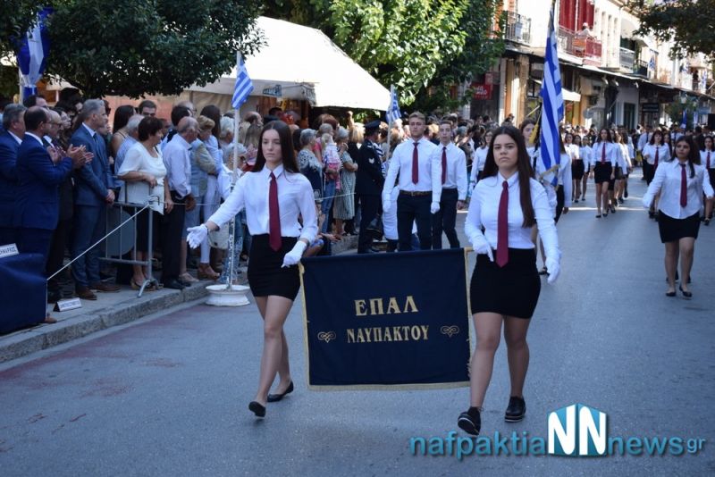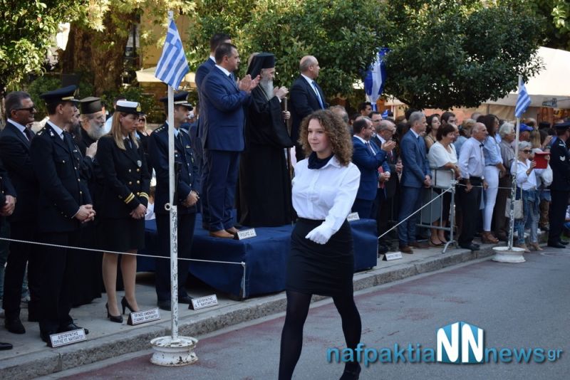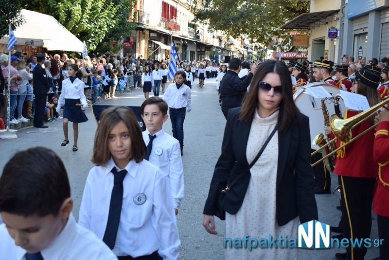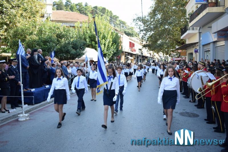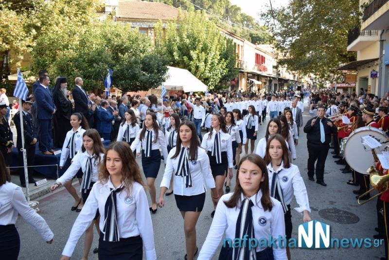 Με λαμπρότητα η παρέλαση της 28ης Οκτωβρίου στην Ναύπακτο. Η μαθητική παρέλαση πραγματοποιήθηκε σε μια ηλιόλουστη μέρα πράγμα που ευνόησε τον κόσμο να βγει στους δρόμους της πόλης.