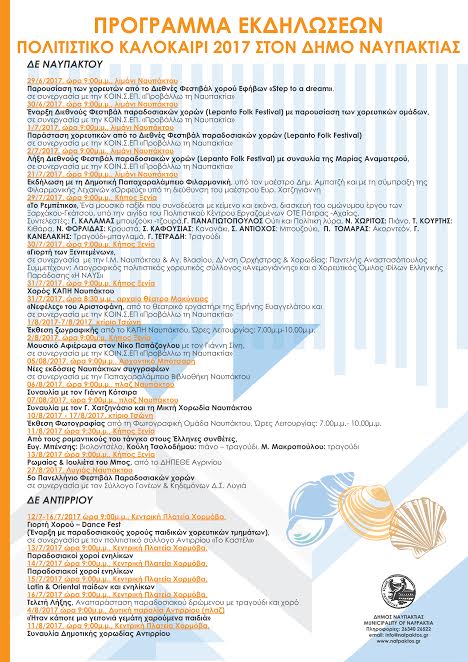 Ένα ακόμα πολιτιστικό καλοκαίρι ξεκινά στoν Δήμο Ναυπακτίας, υποσχόμενο ξεχωριστές στιγμές καλλιτεχνικής έκφρασης.