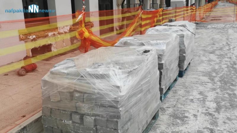 Ναύπακτος: Επίστρωση των κυβόλιθων στην οδό Ν. Μπότσαρη (Βίντεο)