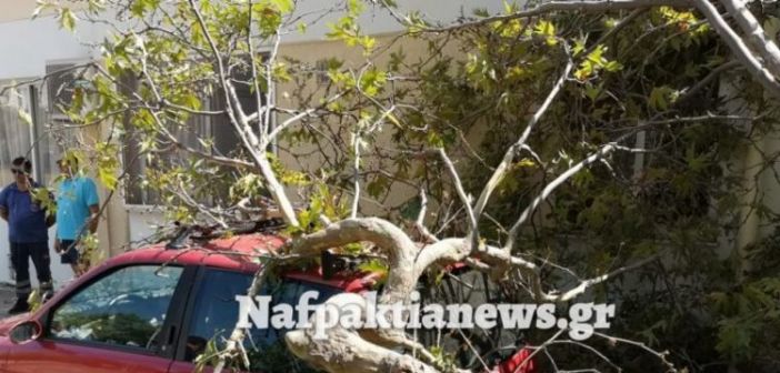 Ναύπακτος: Έσπασε κλαδί και πλάκωσε αυτοκίνητο (Βίντεο)