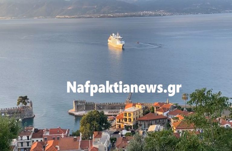 Ναύπακτος: Το κρουαζιερόπλοιο έφτασε ανοικτά του Λιμανιού (Video)