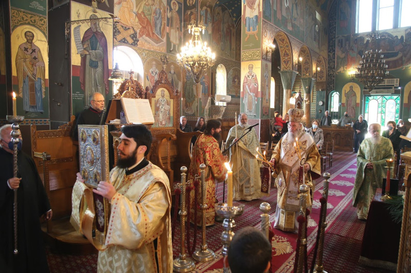 Συλλειτούργησαν οἱ ἐφημέριοι τοῦ Ἱεροῦ Ναοῦ, Πρωτοπρεσβύτεροι π. Ἰωάννης Σπυρόπουλος καί π. Λάμπρος Κούτσικος, καθώς καί οἱ διάκονοι τῆς Ἱερᾶς Μητροπόλεως, π. Παΐσιος καί π. Ἀντώνιος.