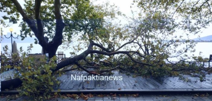 Ναύπακτος: Μεγάλο κλαδί από πλατάνι έπεσε στην παραλία Γριμπόβου
