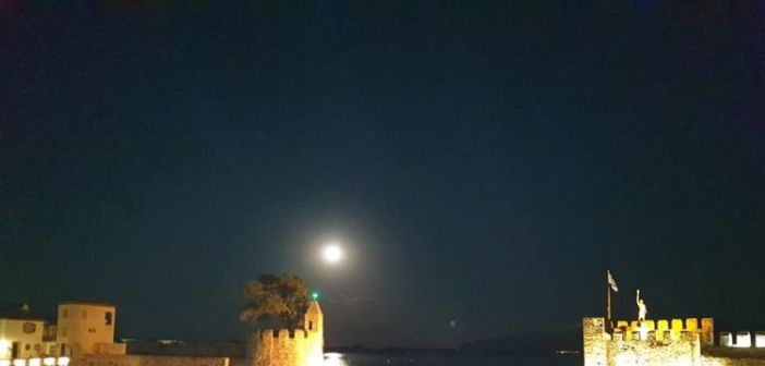 Μαγευτική η πανσέληνος και στο γραφικό λιμάνι της Ναυπάκτου χθες την ώρα που ξεπροβάλλει σιγά σιγά