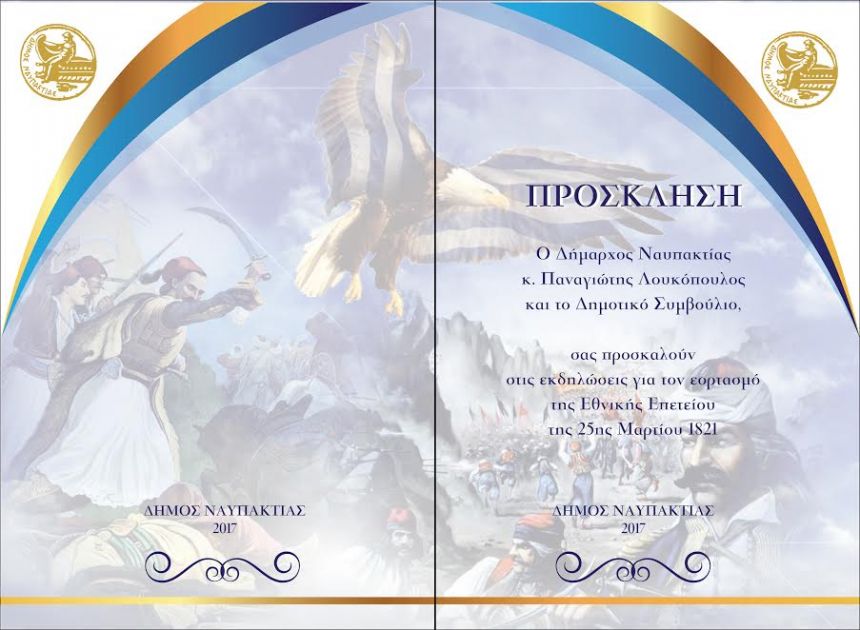 Αιτωλοακαρνανία Ναύπακτος: Πρόγραμμα εκδηλώσεων εορτασμού Εθνικής Επετείου, 25ης Μαρτίου 20 Μαρ 2017 AgrinioTimes Share Tweet ☆ Ακολουθήστε μας στο Google News Σχετικά θέματα: Advertisement Τελευταία νέα →20 Φεβ 2026 21:34Βασίλειος Ρήγας: Στο Αμπελάκι Αμφιλοχίας το τελευταίο «αντίο» στον 73χρονο20 Φεβ 2026 19:18Στάθης Λαγός: Ένα νέο μέλος για την οικογένεια του Προέδρου του Αγίου Ανδρέα Μακρυνείας!20 Φεβ 2026 17:28Θανάσης Μαυρομμάτης: «Επικείμενη υπερχείλιση του ταμιευτήρα του Ευήνου, συνεδρίασε άμεσα το Π.Ε.ΣΟ.Π.»20 Φεβ 2026 16:11Γιάννης Βασιλείου: «Υπερχείλιση ρεμάτων σε Ζευγαράκι και Κάτω Κεράσοβο, προβλήματα στο οδικό δίκτυο»20 Φεβ 2026 13:53Ερασιτέχνης Παναιτωλικός: Η Ομάδα Υδατοσφαίρισης αγωνίζεται για πρώτη φορά στην έδρα της20 Φεβ 2026 13:36ΕΛ.ΑΣ.: Ανήλικοι από 10 έως 13 ετών διέπραξαν δεκαπέντε κλοπές, πάνω από 2 χιλιάδες ευρώ η λεία τους20 Φεβ 2026 13:21Σπολάιτα Αγρινίου: Η πρωινή έντονη χαλαζόπτωση προκάλεσε αναστάτωση στους κατοίκους20 Φεβ 2026 10:47Νίκος Δένδιας από το Αγρίνιο: «…άντε να αγκομαχούμε και να θριαμβολογούμε όταν μπροστά μπαίνει ένα 3»20 Φεβ 2026 10:37Ημερήσιες Προβλέψεις για τα Ζώδια (20/02)20 Φεβ 2026 10:26Εορτολόγιο: 20 Φεβρουαρίου τιμάται από την Εκκλησία ο Άγιος Λέων ο Θαυματουργός Επίσκοπος Κατάνης