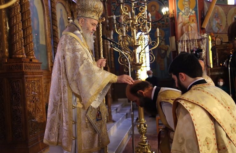Ὁ Σεβασμιώτατος τέλεσε τήν χειροτονίας φορώντας τά ἄμφια τοῦ ἁγίου Καλλινίκου.