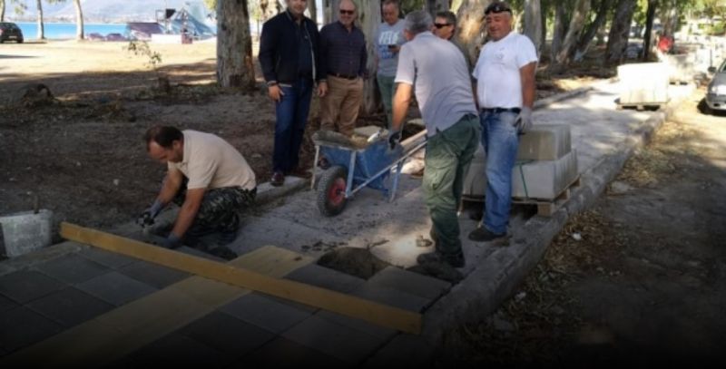 Ναύπακτος: Ξεκίνησε η αποκατάσταση του πεζοδρομίου στο Αλσύλλιο (Φωτό)
