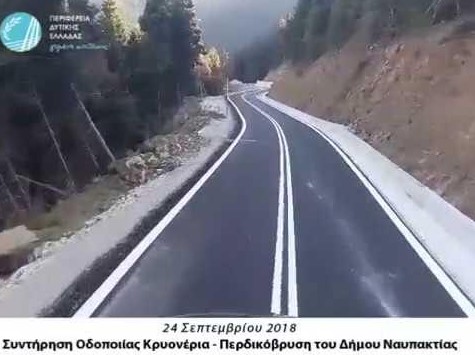 Στο μεταξύ, σε φάση ολοκλήρωσης βρίσκεται το έργο «Συντήρηση Οδοποιίας Κρυονέρια – Περδικόβρυση του Δήμου Ναυπακτίας» Οι εργασίες που έχουν εκτελεστεί αφορούν στην κατασκευή νέου οδικού άξονα 3,5 χιλιόμετρα περίπου με κατασκευή τεχνικών, ασφαλτόστρωση, στηθαία ασφαλείας, διαγραμμίσεις καθώς και σήμανση, ενώ στις εργασίες περιλαμβάνονταν και ανακατασκευή παλαιού δικτύου περίπου ενός χιλιομέτρου προκειμένου οι επαρχιακοί δρόμοι να είναι ασφαλείς και προσβάσιμοι στους πολίτες.